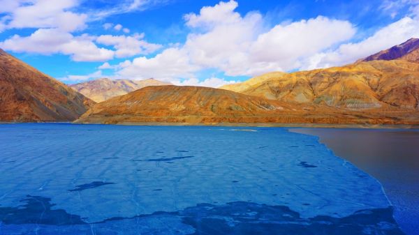 核心玩法:湖畔徒步(路况平缓,适合休闲漫步),拍摄雪山蓝湖全景(无人机航拍效果更佳),冬季可拍蓝冰特写(需注意冰面安全)。