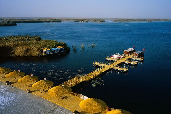 - 上午:早餐后从尉犁出发,沿乌尉高速延伸段前往库尔勒市,抵达后前往【博斯腾湖】(门票+区间车90元/人,核心景点为大河口景区),游览中国最大的内陆淡水湖,欣赏湖水、芦苇荡、湿地风光,可自费乘船游湖(80元/人)。