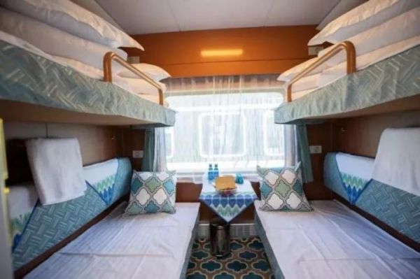- 车厢配置:以软卧、硬卧为主,软卧为四人包厢(包厢内配备小桌板、行李架,铺位宽度50cm),硬卧为六人包厢(上下铺,中间有过道小桌),部分车次配备双层软卧/硬卧(四人包厢,独立拉门,私密性强,下层铺距地面60cm,方便老人上)。所有车厢均配备24小时开水(每节车厢2个电开水器,标注“开水”“温水”标识)、独立空调(可调节温度,每排有出风口)、充电设施(每包厢2个插座,位于小桌板下方,支持5V/2A充电),无独立卫浴(公共卫生间位于车厢两端,每日早晚各清洁2次,配备洗手液、卫生纸,有专人随时补充)。